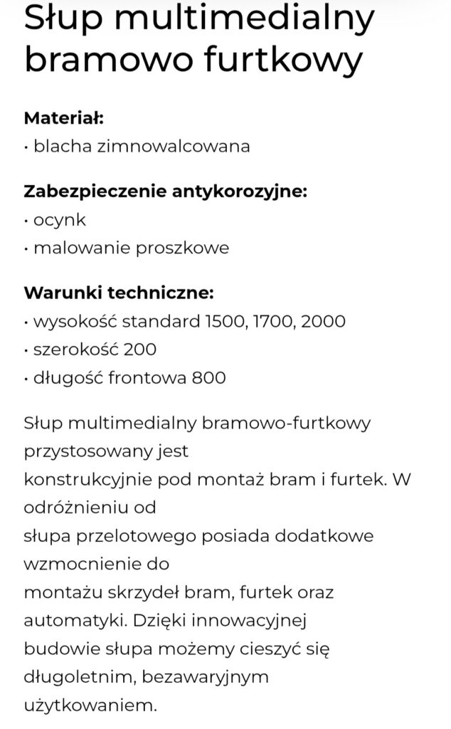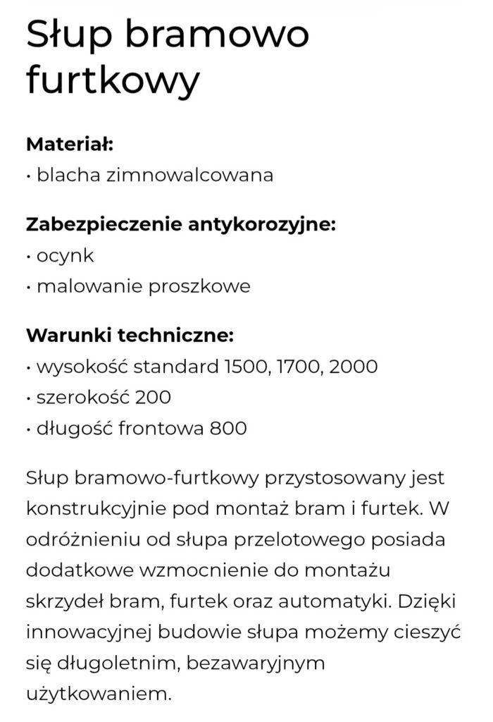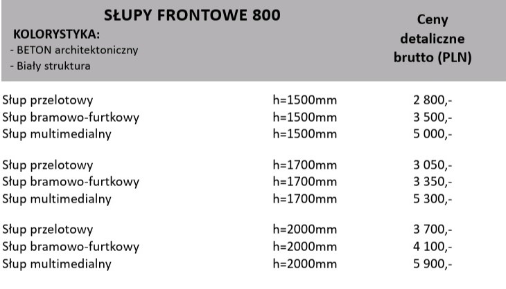 Słupy frontowe 800